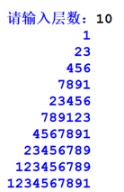 N = int(input("请输入层数:")) K = 1 for i in range (1, N + 1): for _ in range(1, ___________): print(" ", end = "") for _ in range(1, ________): print(K, end = "") K += 1 if K == 10: K = 1 print()